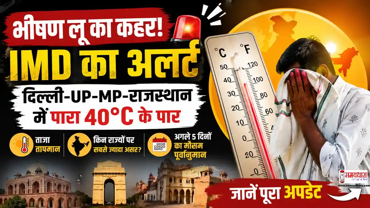 India Heatwave Alert 2026: IMD ने Delhi, UP, MP, Rajasthan में भीषण लू की चेतावनी दी। जानें ताजा तापमान, कारण और अगले 5 दिनों का मौसम अपडेट।
