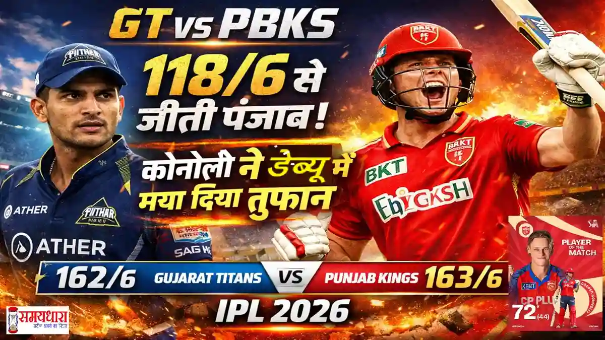 12 ओवर के बाद पंजाब का स्कोर 2 विकेट पर 110 रन था और टीम मजबूत स्थिति में दिख रही थी। PBKSvsGT IPL 2026 Match Report लेकिन इसके बाद गुजरात के गेंदबाजों ने शानदार वापसी की और लगातार विकेट लेकर मैच को रोमांचक बना दिया।