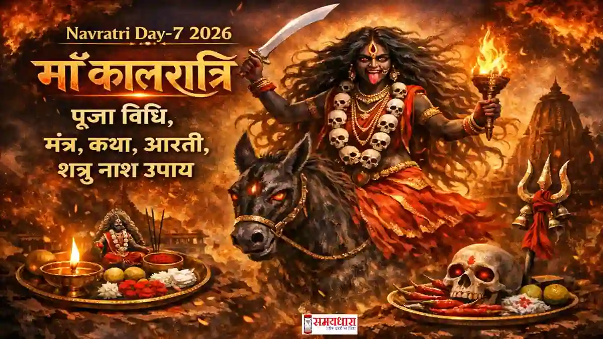 Navratri Day -7 2026 Maa Kalratri : माँ कालरात्रि पूजा विधि, मंत्र, कथा, आरती, शुभ रंग, महत्व और उपाय