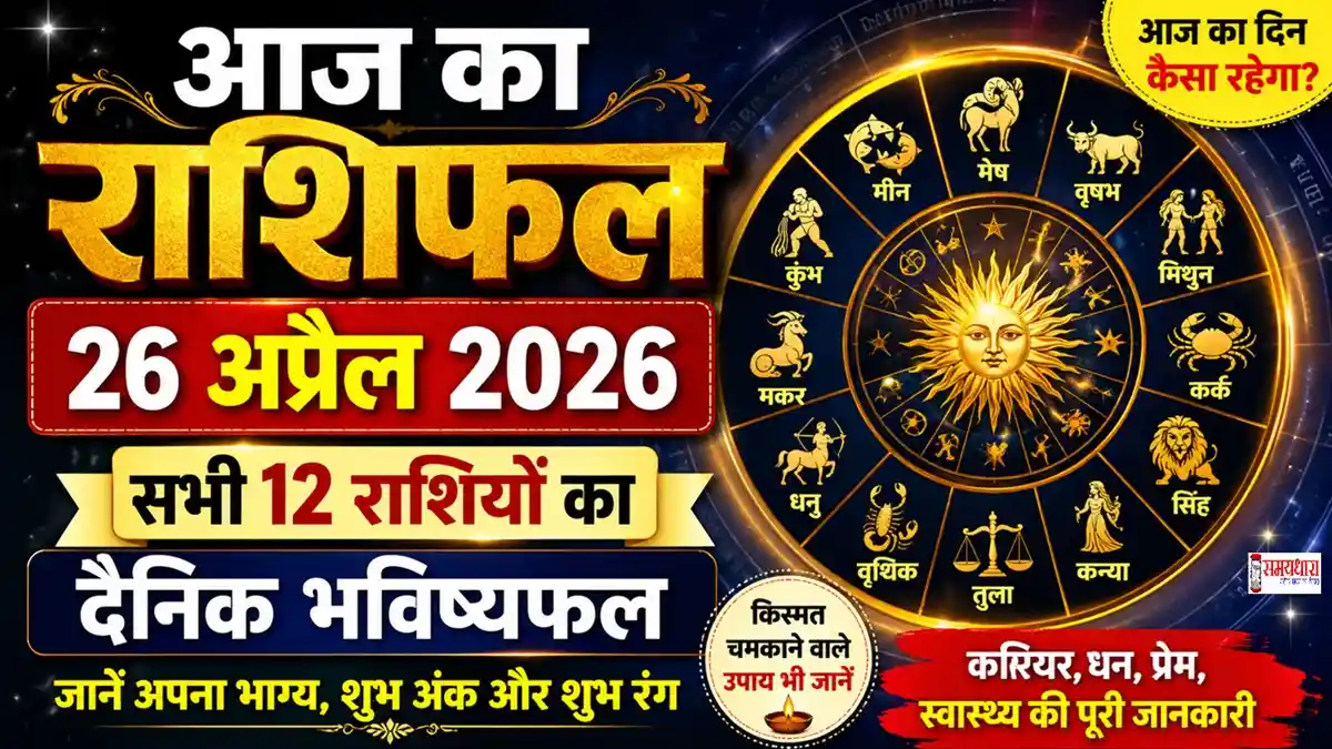 Aaj Ka Rashifal 26 April 2026 (आज का राशिफल 26 अप्रैल 2026) : जानिए सभी 12 राशियों का करियर, धन, स्वास्थ्य और प्रेम जीवन का सटीक भविष्यफल और शुभ अंक-रंग।